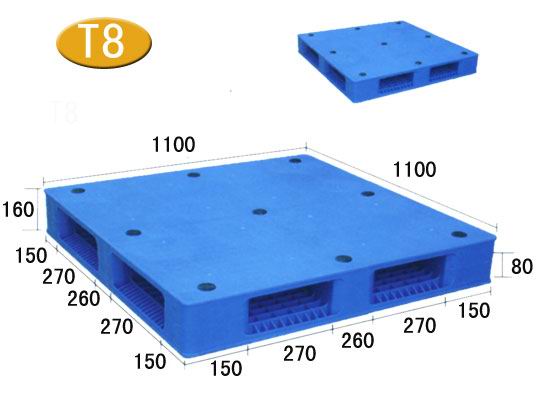 產(chǎn)品型號: HD-1111SP2產(chǎn)品貨號: T8 產(chǎn)品外尺寸: 1100×1100×160mm 產(chǎn)品內(nèi)尺寸: 產(chǎn)品結(jié)構(gòu): 雙面焊接平板面重型 產(chǎn)品內(nèi)容量(L): 承重量(T): 動載1.5噸,靜載6噸,貨架1噸 產(chǎn)品認(rèn)可標(biāo)準(zhǔn): ISO9001:2000質(zhì)量體系認(rèn)證 此款塑料托盤適用平地墊倉及碼垛使用,內(nèi)含5個螺栓,增加了托盤強(qiáng)度