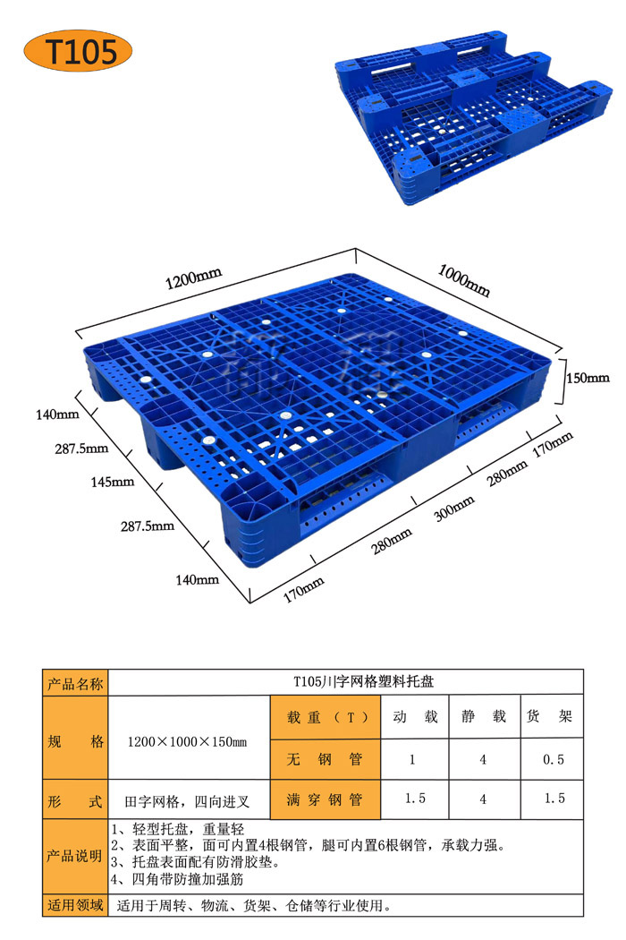 • T84-1210內(nèi)置鋼管川字網(wǎng)格塑料托盤